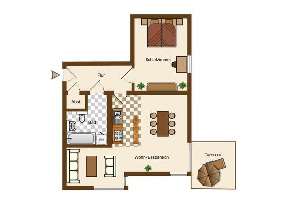 Mehr zum Angebot 2-Zimmer-Wohnung mit Terrasse und Stellplatz - WM-007-203: